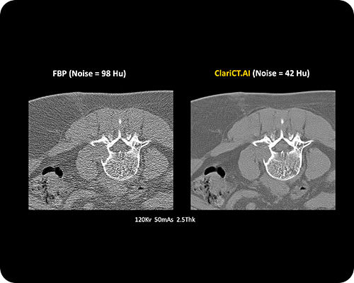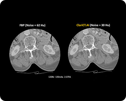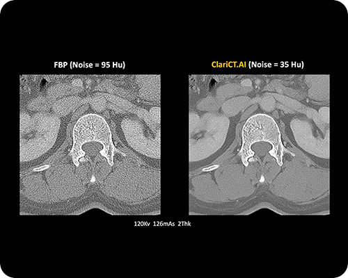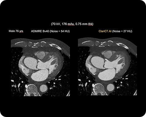 The first AI software that dramatically reduces radiation exposure while delivering the highest quality CT images using advanced AI denoising technology.